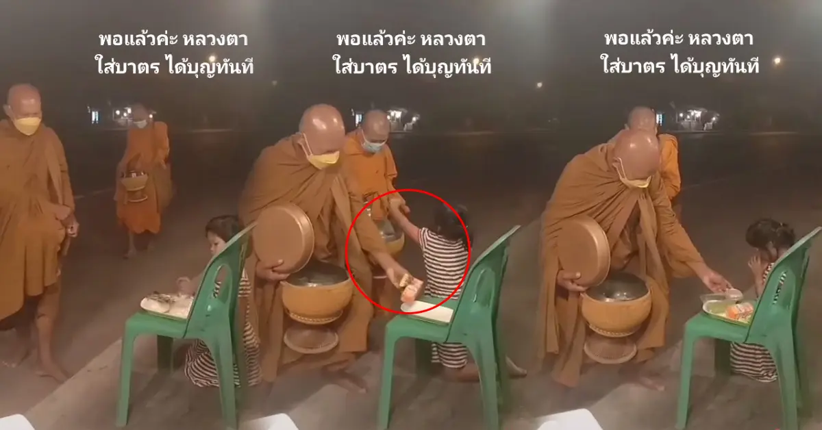 ได้บุญทันที! หนูน้อยใส่บาตร กับคุณแม่ ก่อนหลวงตาหยิบขนมส่งให้คืน เรียกว่าได้ใส่บาตรปุ๊บ ได้บุญปั๊บ เอ็นดูไม่ไหว ชาวเน็ตแห่ชื่นชม