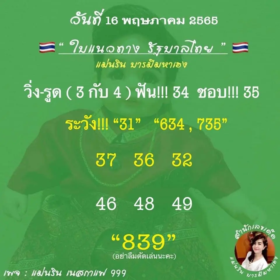 แนวทางรัฐบาลไทย แม่นริน บารมีมหาเฮง เลขเด็ด 3 ตัว