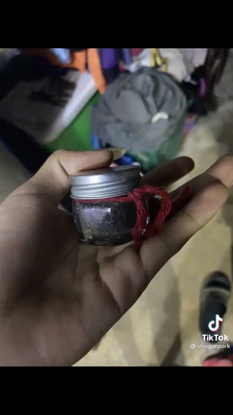 อย่างกรณีนี้ ผู้ใช้ TikTok รายหนึ่งชื่อว่า shogunpark โพสต์เล่าเรื่องราวสุดพิศวง เมื่อตนไปพักที่บ้านต่างจังหวัดโดยนำหมอนใบหนึ่งที่มีคนเอาให้มาหนุน เมื่อทิ้งหัวลงหมอนก็รู้สึกได้ว่ามีบางอย่างอยู่ภายใน จึงพยายามหยิบออกมาจนพบว่าของสิ่งนั้นมีลักษณะเป็นตลับคล้ายยาหม่อง มีเชือกผูกอยู่