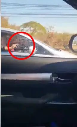 โดยผู้ใช้รถที่เผยแพร่คลิประบุว่า รถกระบะที่ขับตามมา มีการพกปืนขึ้นมาขู่ ซึ่งไม่แน่ชัดว่าเป็นปืนจริงหรือปืนปลอม บริเวณหน้ารถฝั่งขวาคนขับรถกระบะที่ขับตามมา