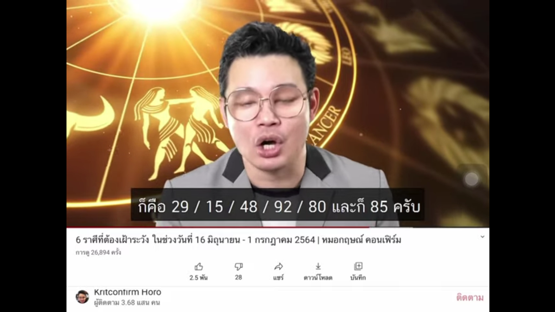 นักแนะแนวทางเลขเด็ดมีร้อนๆหนาวๆกันแล้วหลัง หมอกฤษณ์ คอนเฟิร์ม เผยคลิปผ่าน Youtube Channel Kritconfirm Horo ให้เลขเด็ดถูกติดมาแล้วถึง 7 งวด
