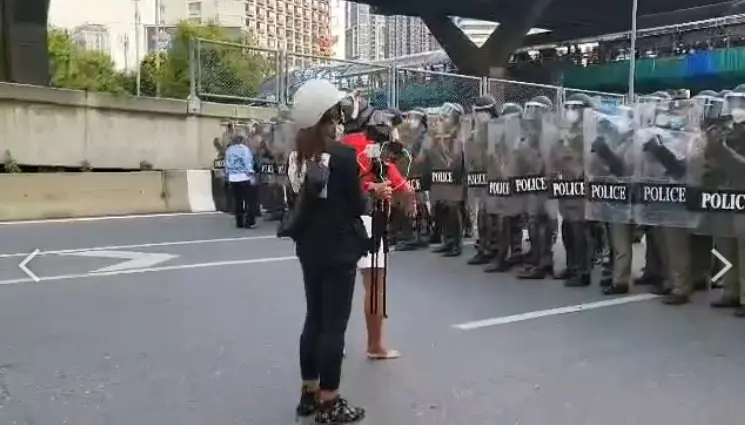 โดยในช่วงเวลาประมาณ 16.00 น. เกือบเกิดเหตุปะทะกันระหว่างกลุ่มฝูงชนกับเจ้าหน้าที่ตำรวจ คฝ. ที่กำลังประฏิบัติหน้าที่อยู่บริเวณนั้น เนื่องจากเจ้าหน้าที่ตำรวจเคลื่อนกำลังมาเผชิญหน้ากับผู้ชุมนุมที่ปิดถนนวิภาวดีอยู่ในขณะนั้น เจรจาเพื่อขอให้เปิดถนนและเปิดการจราจรแต่มีผู้ชุมนุมบางคนไม่ยินยอม