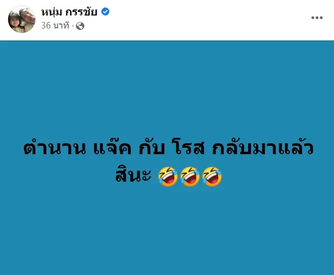 ล่าสุด หลังจากที่ทางด้านทนายเดชา ออกมาแถลงข่าวตอบข้อสงสัยที่ประชาชนต่างเฝ้ารอมาหลายวัน หนุ่ม กรรชัย ก็มีการเคลื่อนไหนบนแพลตฟอร์มเฟซบุ๊กส่วนตัวว่า “ตำนาน แจ๊ค กับ โรส กลับมาแล้วสินะ” ทำเอาชาวเน็ตต่างสงสัยหนักว่าสิ่งที่พี่หนุ่มโพสต์หมายความว่าไง
