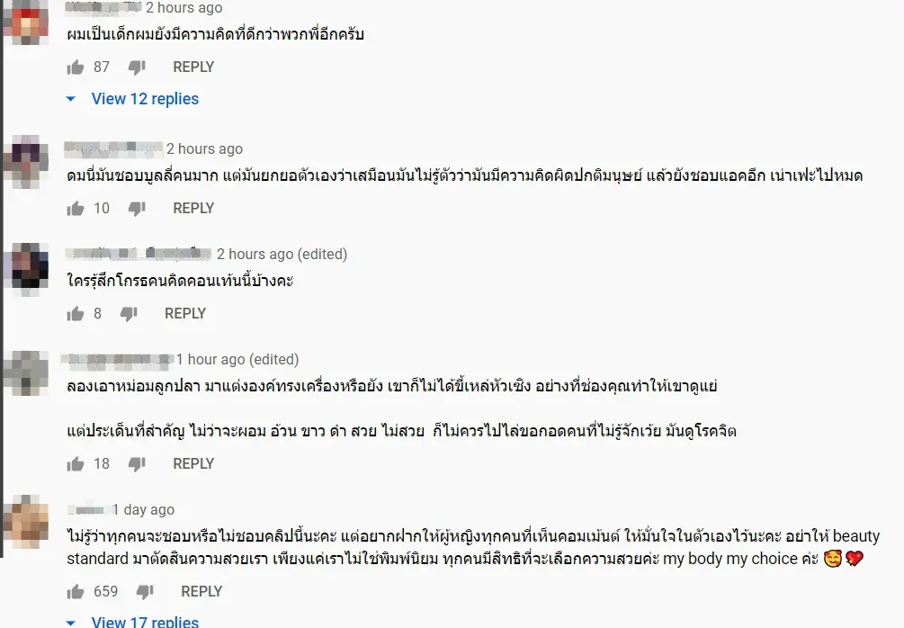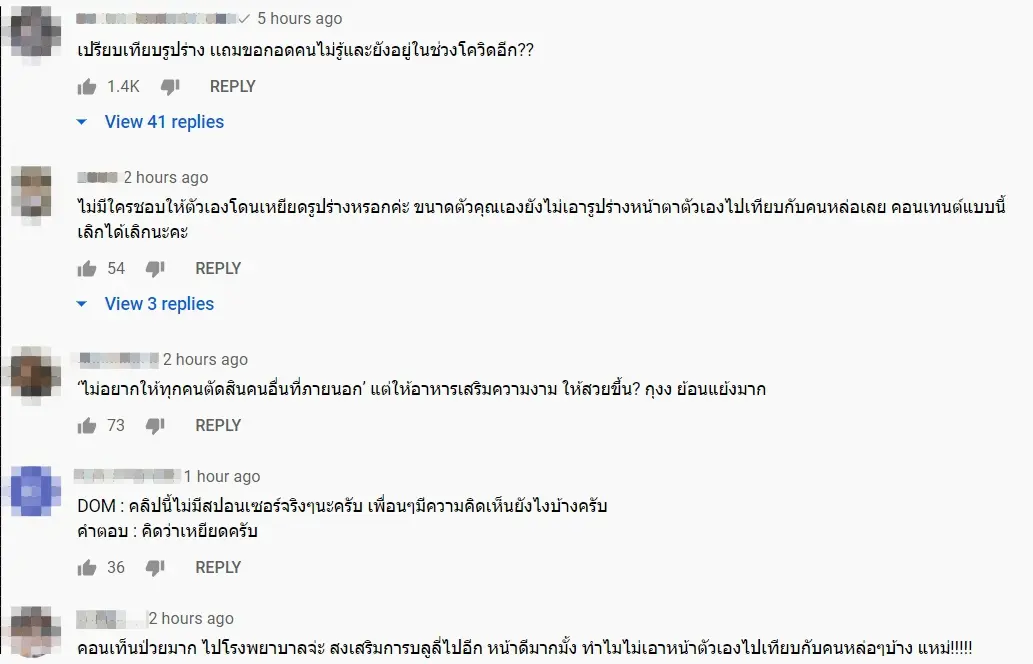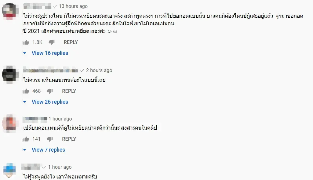 อย่างไรก็ตาม ชาวเน็ตไม่รอช้า ทัวร์ลง ช่องยูทูบดังกล่าว จำนวนมาก ซึ่งส่วนใหญ่มองว่าเป็นการเหยียด บูลลี่ (Bully) และไม่ขอสนับสนุนในการทำคลิปแบบนี้ พร้อมวิพากษ์วิจารณ์อย่างหนักกว่า 6 พันคอมเมนต์