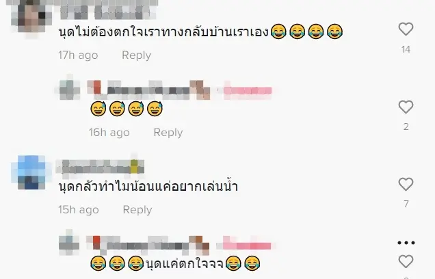 งานนี้ทำเอาชาวเน็ตแห่เข้าคอมเม้นท์ถึงเหตุการณ์ที่เกิดขึ้นพร้อมแซวว่า ไห้ลุงเล่นด้วยลุงไม่มีเพื่อนเล่น, ช่วงนี้ พบกับ รายการ พบปะประชาชน, นุดไม่ต้องตกใจเราทางกลับบ้านเราเอง, นุดกลัวทำไมน้อนแค่อยากเล่นน้ำ, ไปวันไหนก็เจอส่วนมากชอบอยุ่ชั้น5, คงอยากเล่นด้วยและนานๆทีจะมีคนมาเล่นเยอะๆแบบนี้