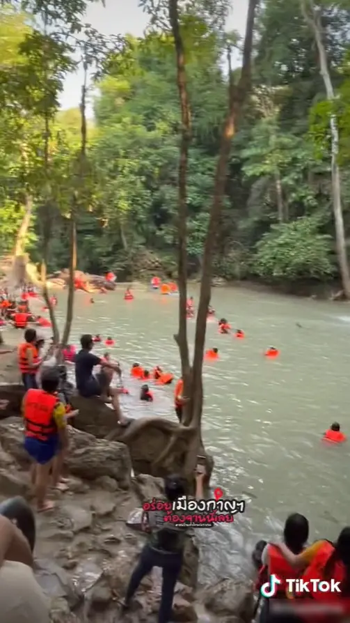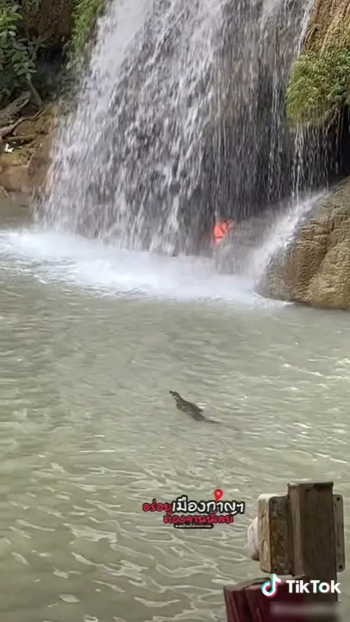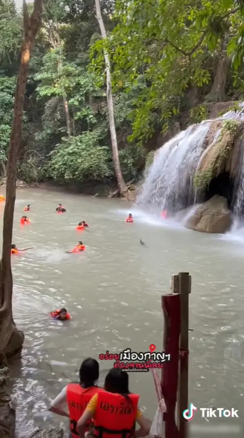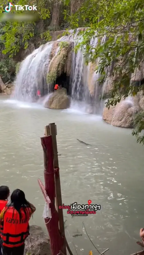 อย่างในกรณีนี้ ผู้ใช้ TikTok รายหนึ่งได้โพสต์คลิปเล่าเรื่องราวบรรยากาศภายในน้ำตกเอราวัณ จากคลิปจะเห็นได้ว่า ในช่วงเวลาดังกล่าวได้มีนักท่องเที่ยวร่วมลงเล่นน้ำอยู่ภายในน้ำตกเป็นจำนวนมาก แต่แล้วจู่ๆก็มีเจ้าถิ่นตัวหนึ่งได้โดดลงน้ำซึ่งมีนักท่องเที่ยวอยู่