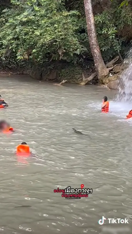 เจอแบบนี้ไปวงแตกทั้งนั้น! เจ้าถิ่นโดดเล่นน้ำ ร่วมวงกับนักท่องเที่ยวที่น้ำตกเอราวัณ งานนี้ทำผู้คนต่างแตกตื่นว่ายน้ำหนีเอาตัวรอด แต่เจ้าถิ่นกับว่ายผ่านแบบไม่รู้ร้อนรู้หนาว