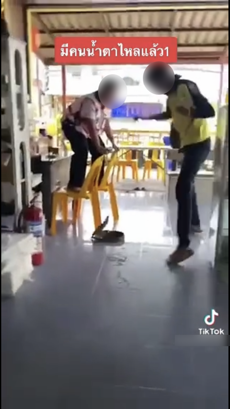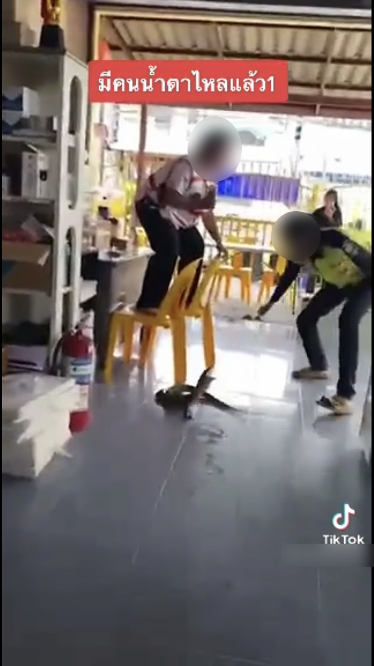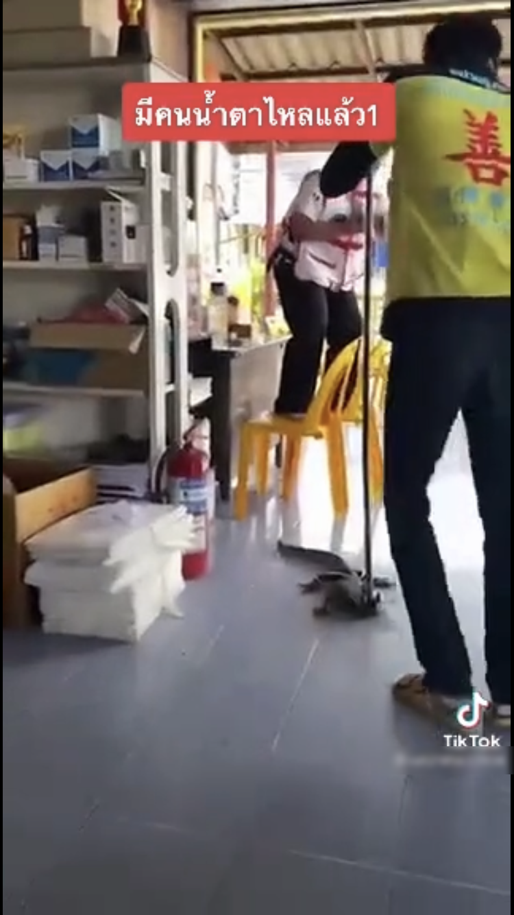 อย่างเช่นเหตุการณ์นี้ที่เปลี่ยนคลิปธรรมดาให้กลายเป็นที่สนใจอย่างล้นหลาม เมื่อผู้ใช้ TikTok รายหนึ่งได้เผยคลิปเรื่องราวที่สาวกู้ภัยกระโดดขึ้นเก้าอี้ ร้องเสียงหลงจนน้ำตาไหล โดยมีตัวเงินตัวทองท่าทางดุร้ายอยู่ข้างๆ ด้านล่าง ซึ่งสาวคนดังกล่าวได้ร้องตะโกนขอความช่วยเหลือว่า “เอาออกไปที จับออกไปที”