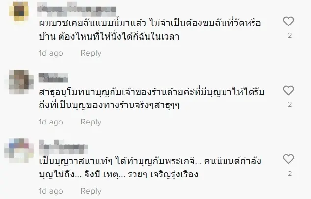 จากคลิปผู้โพสต์อธิบายว่า เนื่องจากพระท่านมาซื้ออาหารที่ร้านค่ะ เลยได้รับการบอกเล่าจากท่านมาประมาณว่า นิมนต์พระมา แล้วเจ้าของไม่อยู่บ้าน ไม่ทราบสาเหตุเช่นกัน เนื่องจากทางร้านไม่มีโต๊ะให้นั่ง พระท่านก็บอกไม่เป็นไรให้ใส่กล่องแทน ทางร้านเลยได้ถวายอาหาร, ขนม, น้ำและถวายปัจจัยทำบุญให้ท่านค่ะ ท่านใจดีมากๆค่ะ