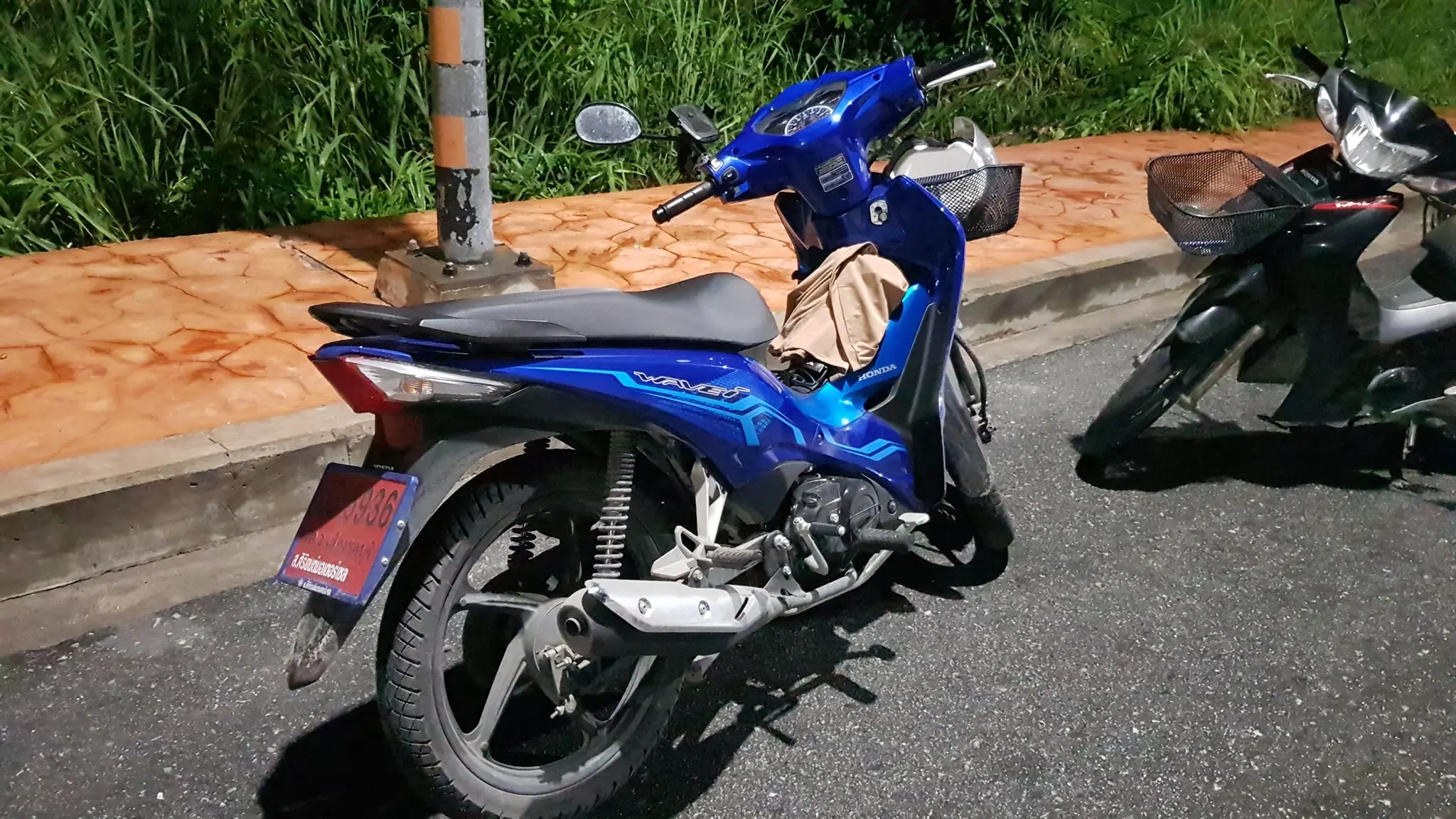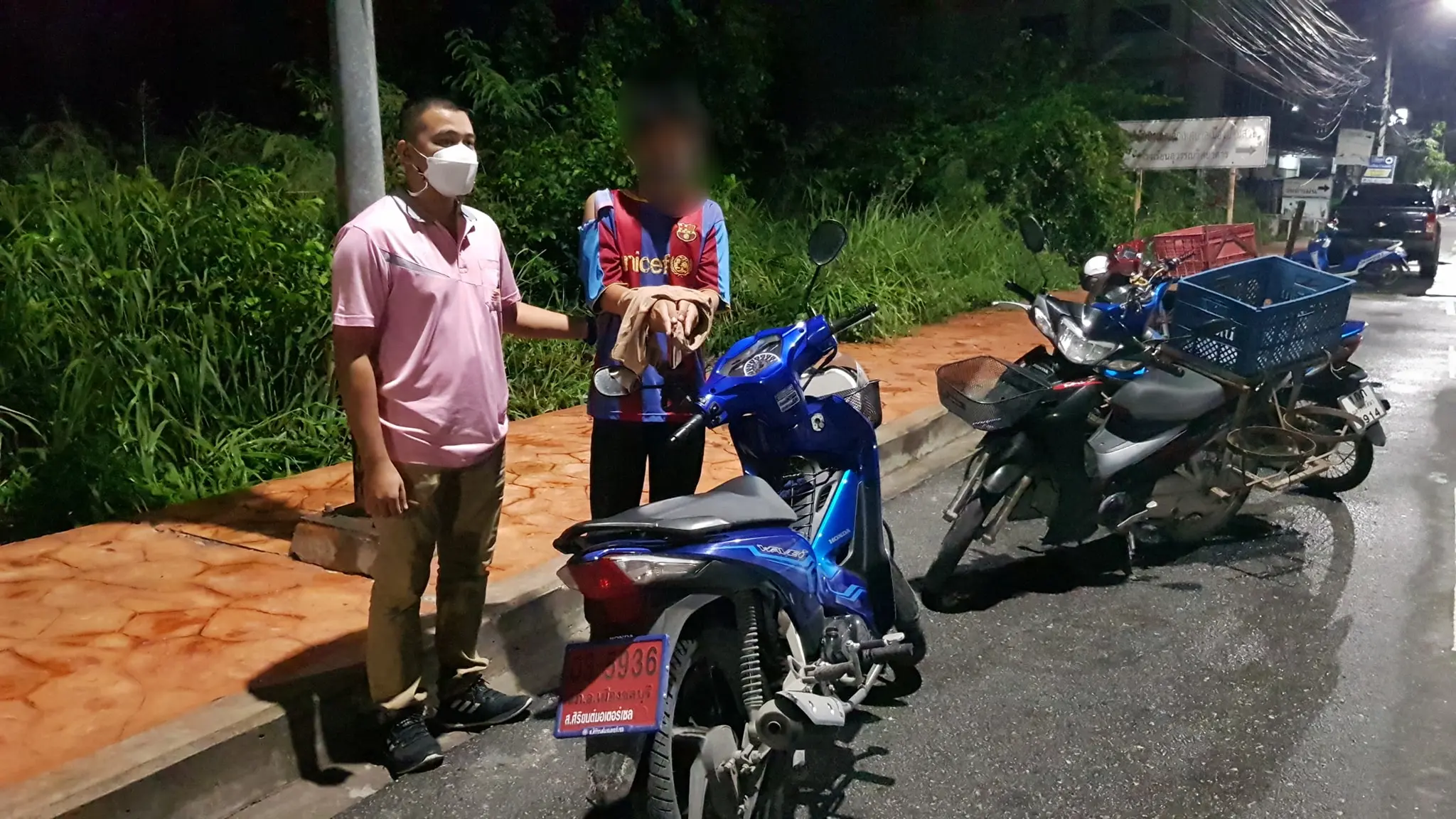 ห่างไปสิบเมตรคนร้ายได้ทิ้งกระเป๋าแกปใว้ข้างทางแถมยังขโมยกุ้งของลูกค้าไปอีกและของที่ต้องไปส่งลูกค้าตัวเองยังรับผิดชอบทั้งหมด ใครเจอรถจักรยานยนต์เวฟสีน้ำเงินล่อแม็กสีดำ 035936 ป้ายแดงสภเมืงชลบอกด้วยครับ สงสารน้องครับ”