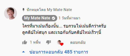 แซ่บอย่างต่อเนื่อง – ประเด็น เมียยูทูบเบอร์ แอบแซ่บผัวชาวบ้าน ล่าสุด ยูทูบเบอร์ที่โดนโยงอย่าง “my mate nate” เคลื่อนไหวแล้ว
