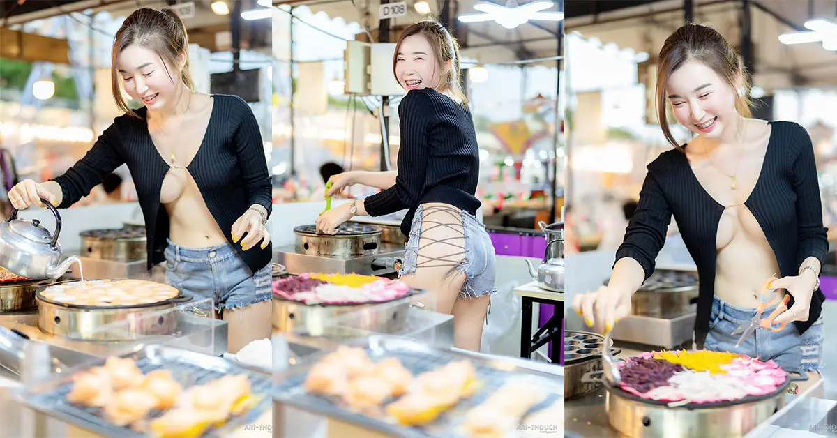ล่าสุดโผล่อีกหนึ่งราย เมื่อวันที่ 26 พฤศจิกายน 2564 ทางด้านของเฟซบุ๊ก กนกญาดา จิตตอำพน ซึ่งเป็นเฟซของแม่ค้าขายขนมครก ที่ตลาดนัดเลียบด่วนรามอินทรา กับโพสต์ภาพลุคสุดแซ่บ เสื้อดำตัวเล็ก โนบรา คอลึก วาบหวิวแบบที่กำลังเป็นกระแส พร้อมแคปชั่นเรียกลูกค้าว่า “ถ้าพี่เหมาขนมครก พี่ก็ยกแม่ค้าไปด้วยเลยจ้าาา”