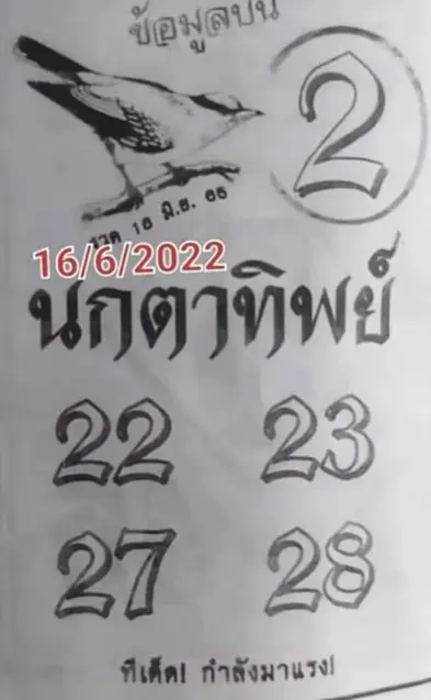 แนวทางเลขเด็ด นกตาทิพย์ เลขเด็ดงวดนี้ 16/6/65