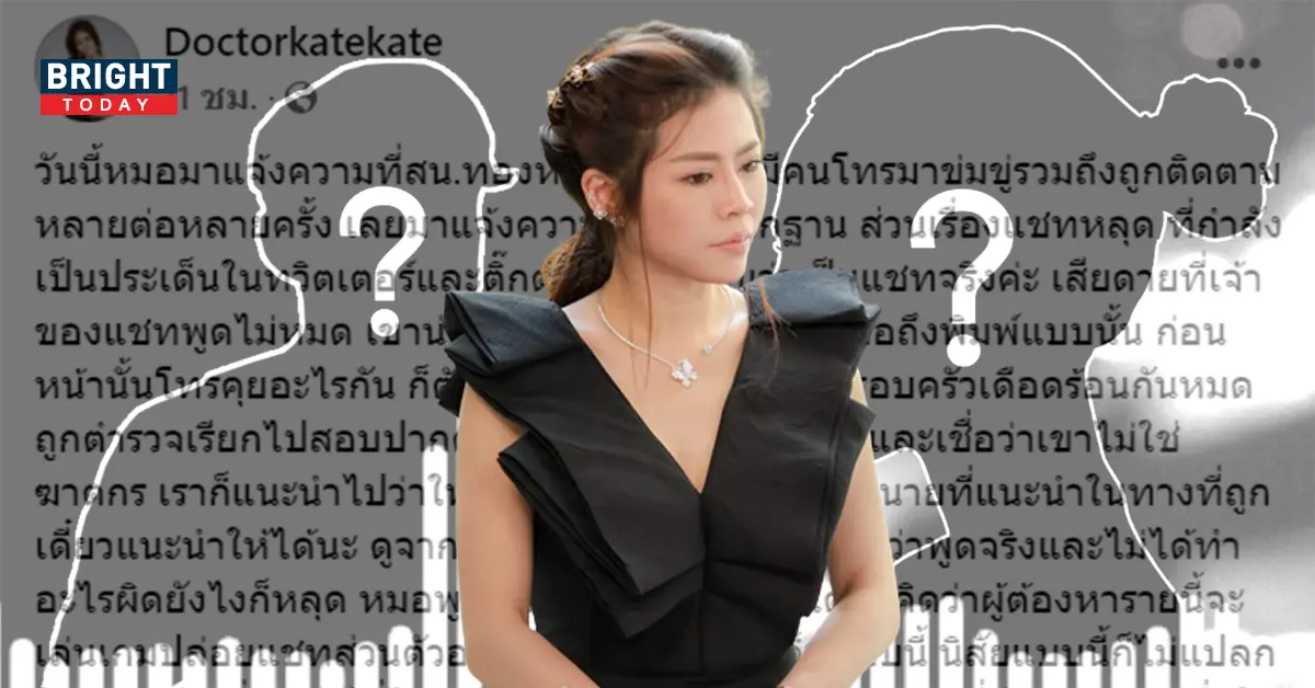 วันนี้หมอมาแจ้งความที่สน.ทองหล่อ หลังจากมีคนโทรมาข่มขู่รวมถึงถูกติดตามหลายต่อหลายครั้ง เลยมาแจ้งความไว้เป็นหลักฐาน ส่วนเรื่องแชทหลุด ที่กำลังเป็นประเด็นในทวิตเตอร์และติ๊กตอก ขอยืนยันว่าเป็นแชทจริงค่ะ เสียดายที่เจ้าของแชทพูดไม่หมด เขาน่าจะบอกด้วยนะว่าทำไมหมอถึงพิมพ์แบบนั้น ก่อนหน้านั้นโทรคุยอะไรกัน ก็ตัวเขาเองเป็นคนบอกว่า ครอบครัวเดือดร้อนกันหมด ถูกตำรวจเรียกไปสอบปากคำ หมอซึ่งในฐานะคนรู้จักและเชื่อว่าเขาไม่ใช่ฆาตกร เราก็แนะนำไปว่าให้พูดความจริงและถ้าไม่มีทนายที่แนะนำในทางที่ถูก เดี๋ยวแนะนำให้ได้นะ ดูจากหลักฐานที่ผ่านมา ถ้ามั่นใจว่าพูดจริงและไม่ได้ทำอะไรผิดยังไงก็หลุด หมอพูดแบบนี้ตั้งแต่วันแรก แต่ไม่คิดว่าผู้ต้องหารายนี้จะเล่นเกมปล่อยแชทส่วนตัวออกมาเบี่ยงเบนประเด็นแบบนี้ นิสัยแบบนี้ก็ไม่แปลกใจหรอกนะ ที่ถ่ายรูปที่ไม่น่ารักของเพื่อนไปลงในกลุ่มแชทที่มีคนเยอะๆ เพื่อให้คนหัวเราะกัน รวมถึงกลับบ้านนอน ในขณะที่เพื่อนคนนึงประสบอุบัติเหตุกลางแม่น้ำเจ้าพระยา