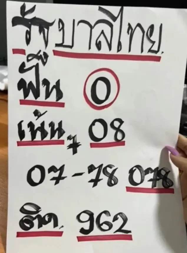 โดยแนวทางที่เธอได้ให้ไว้นั้นก็คือ เลขเด็ดสองตัวตรง 08 – 07 – 78 เลขเด็ดสามตัวตรง 078 – 962 ทั้งนี้เจ้าตัวได้ทำการฟันเลขเด็ดในงวดนี้ซึ่งก็เน้นเลขเด็ดที่น่าสนใจในงวดนี้ไปที่เลขที่เธอได้ขีดเส้นใต้สีแดงเอาไว้ให้ลองนำไปเสี่ยงโชคแบบหนักๆเน้นๆกันดู แต่เลขอื่นก็อย่าทิ้งนะมีลุ้นเสี่ยงโชคเหมือนกัน
