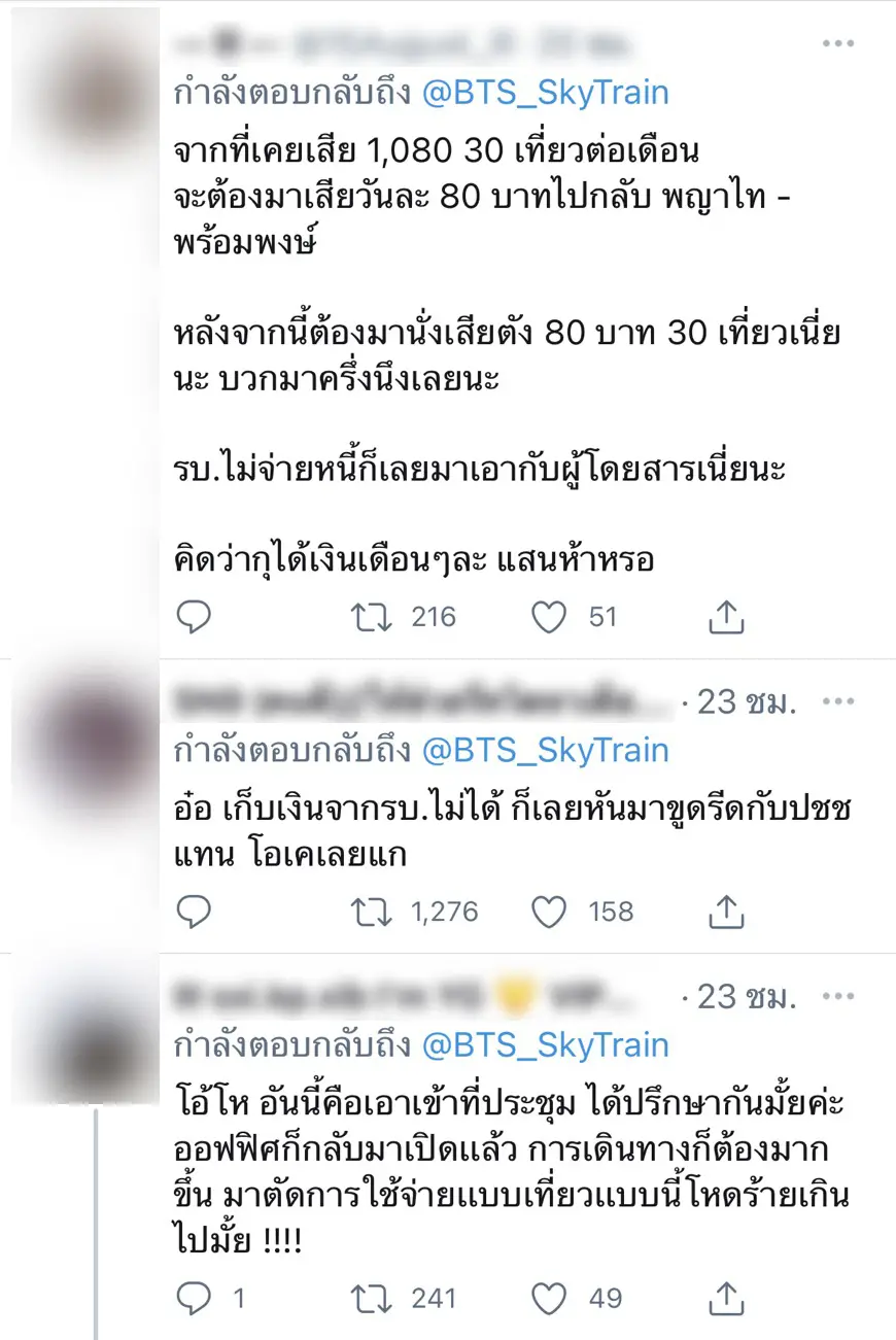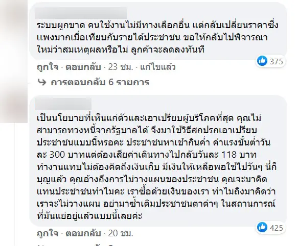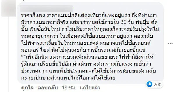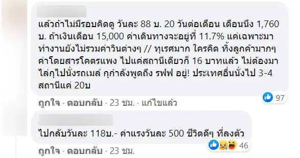 อย่างไรก็ตาม หลังจากที่ ก็ได้มีผู้โดยสารและชาวเน็ตหลายท่าน เข้าไปคอมเมนต์เชิงไม่พอใจทั้งในเฟซบุ๊กและทวิตเตอร์ โดยหลายท่านมองว่า เป็นการผลักภาระให้แก่ประชาชน และเอาเปรียบผู้บริโภคอย่างมาก ทำให้ค่าเดินทาง ค่าโดยสารเพิ่มขึ้นเป็นเท่าตัว