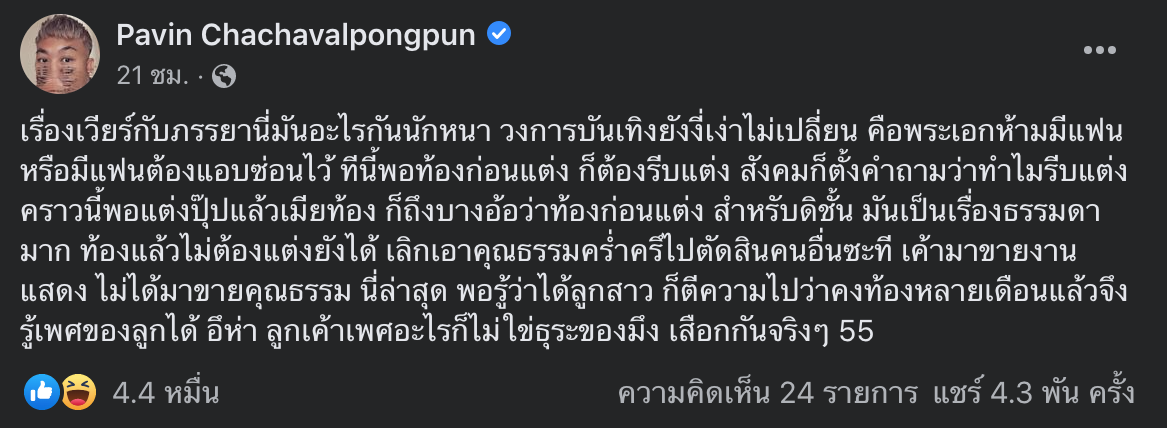 อย่าหาว่าพี่สอน! ปวิน ฟาดสังคมกลับเรื่อง เวียร์-วิกกี้ ลั่น เลิกเอาคุณธรรมไปตัดสินคนอื่นซะที ลูกเขาเพศอะไรก็ไม่ใช่ธุระของxึง เผือกกันจริงๆ