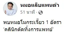 โดยหมอแล็บระบุว่า พบหมอโมกระเจี๊ยว 1 อัตรา ‘คลินิกตัดทิ้งการแพทย์’