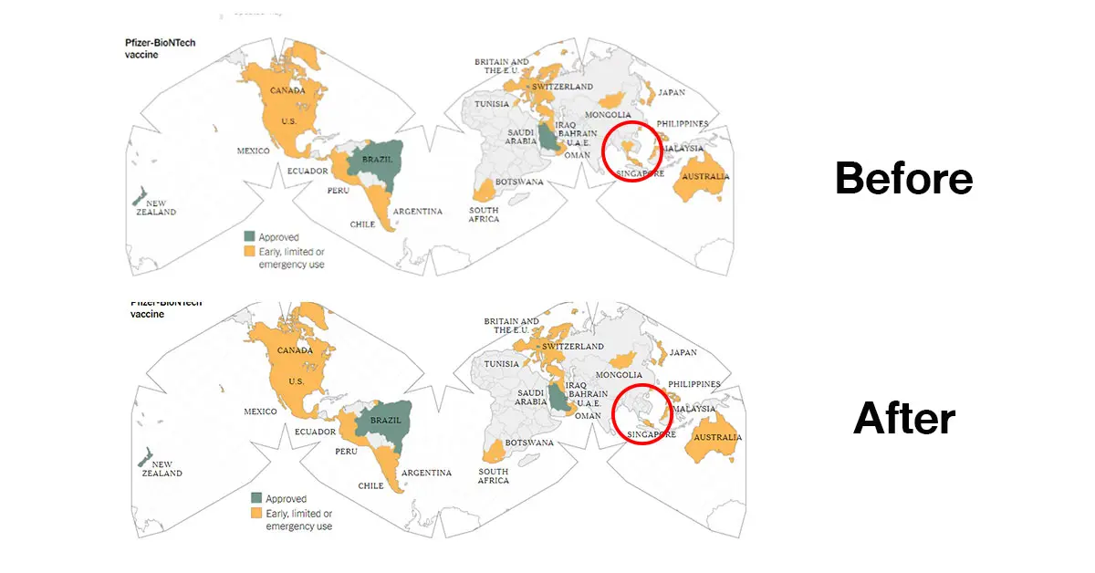 ต่อมาทาง นิวยอร์กไทม์ส (Nytimes) ได้แก้ไขข้อมูลบนแผนที่ประเทศที่นำเข้าวัคซีนไฟเซอร์เป็นที่เรียบร้อยแล้ว
