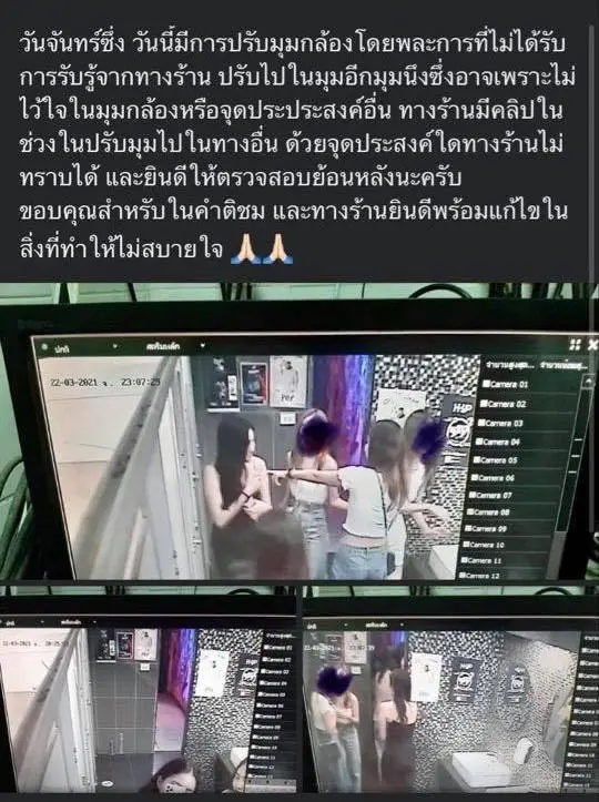 ก่อนที่ทางร้านจะออกมาโพสต์ชี้แจ้งในภายหลัง พร้อมกับโชว์ภาพกล้องวงจรปิดที่ติดภายในห้องน้ำหญิง