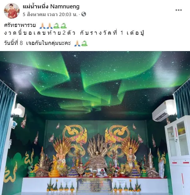 ทั้งนี้ แม่น้ำหนึ่ง เตรียมไลฟ์สดบอกใบ้แนวทางการซื้อลอตเตอรี่เร็วกว่าเดิม โดยนัดแฟนคลับติดตามการไลฟ์สด วันที่ 8 สิงหาคม 64 ผ่านทางหน้าเพจเฟซบุ๊ก แม่น้ำหนึ่ง Namnueng