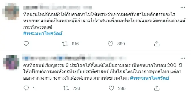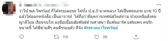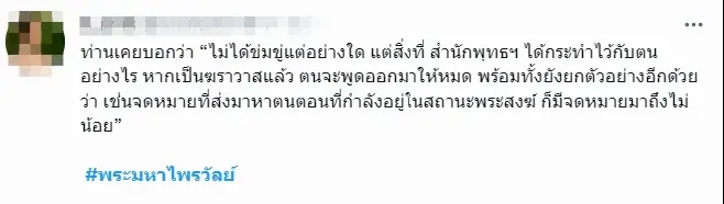 นอกจากนี้บางร้ายยังได้ระบุความคิดเห็นว่า “คนที่สอบปเรียญธรรม 9 ประโยคได้ตั้งแต่ยังเป็นสามเณร เป็นคนแรกในรอบ 200 ปี ให้เปรียบก็อารมณ์หัวกะทิระดับประวัติศาสตร์ เป็นไอสไตน์ในวงการพุทธไทย แต่ลาออกจากวงการ วงการมันต้องล้มเหลวเน่าเฟะขนาดไหน”