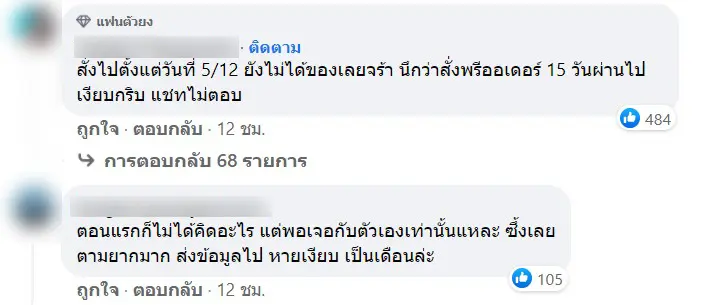 ทั้งนี้ลูกค้าหลายคนยังพูดเป็นเสียงเดียวกันว่า รอนาน และแอดมินไม่สนใจที่จะตามสินค้าให้เลย หายเงียบ ไม่ตอบแชท