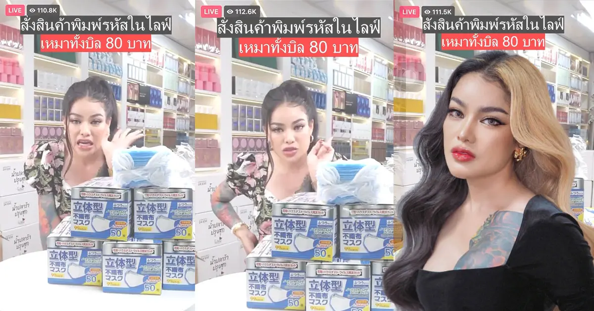 และเมื่อวานนี้ ( 17 เมษายน ) แม่ก็ฟาดอีกแล้ว เมื่อในสถานการณ์การแพร่ระบาดในระลอกใหม่ครั้งนี้ จากสถานบันเทิงที่เป็นประเด็น แม่ค้าอย่างเธอคงหนีไม่พ้นการนำหน้ากากอนามัยมาขาย ซึ่งเป็นแมสจากประเทศญี่ปุ่นที่ไม่ได้มาจากญี่ปุ่น ตามที่เธอเล่า แน่นอนว่าลีลาการขายและฝีปากการขายของเธอไม่แพ้ใคร เธอแนะนำว่าการใส่แมสมันกันเชื้อโรคได้ดีแค่นี้ อีกทั้งยังปิดท้ายการขายด้วยการฝากถึงกระทรวงสาธารณสุขในสไตล์ของเธอว่า