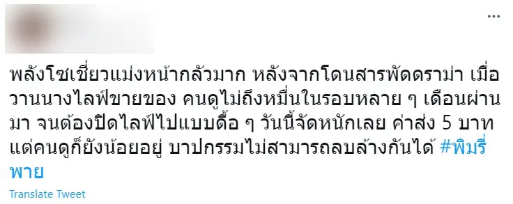 ล่าสุด เมื่อวันที่ 7 มีนาคม ที่ผ่านมา ก็ได้มีผู้ใช้ทวิตเตอร์รายหนึ่ง นำคลิปช่วงหนึ่งที่พิมรี่พาย กำลังไลฟ์ขายของ โดยพิมรี่พาย ก็กล่าวติดตลกกลางไลฟ์ว่า