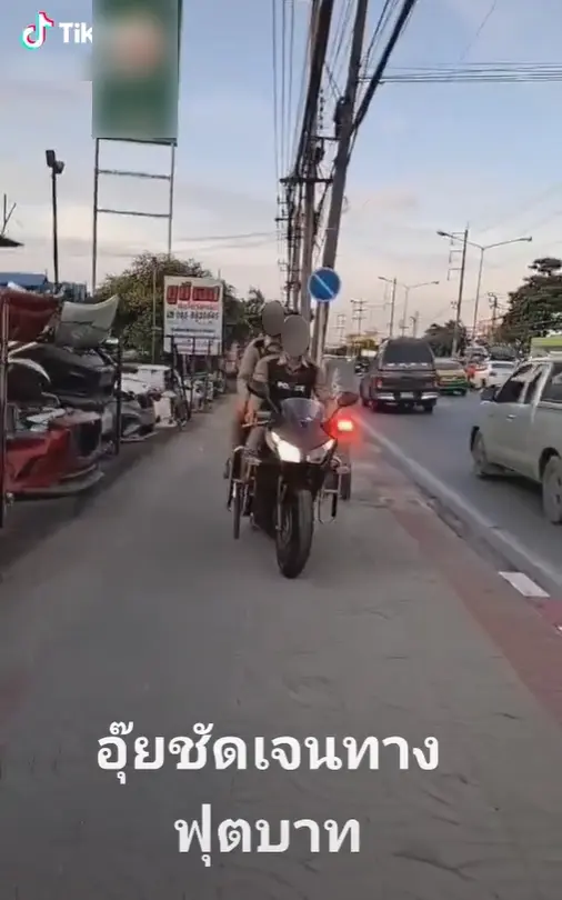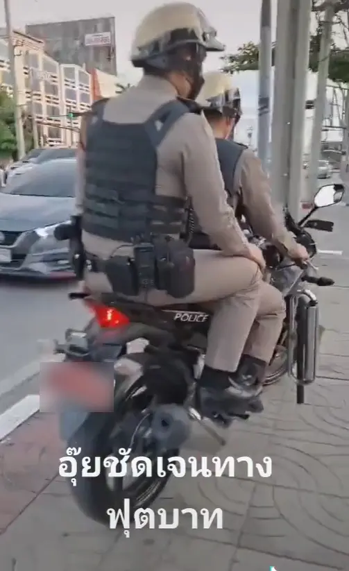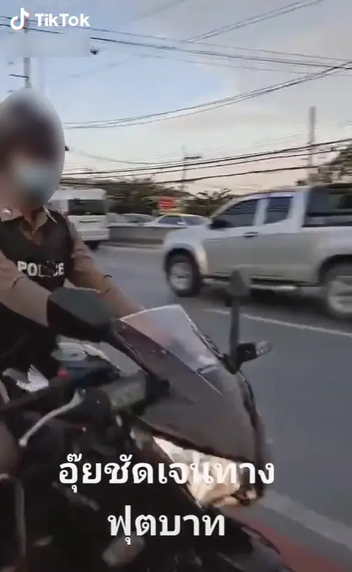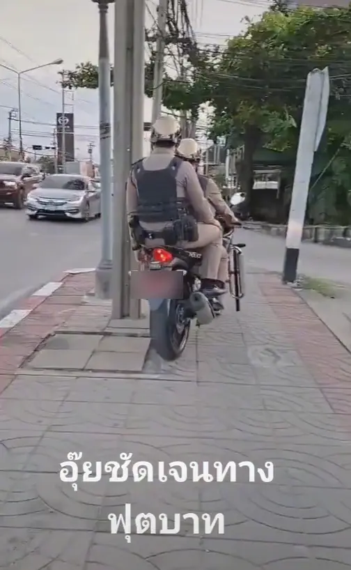 แต่หากเป็นเจ้าหน้าที่รักษากฎหมายทำเองละแบบนี้มีความผิดหรือไม่ อย่างเช่นกรณีนี้ ผู้ใช้ TikTok รายหนึ่งได้โพสต์คลิปที่เป็นกระแสไวรัลตอนนี้ ซึ่งเป็นคลิปวิดีโอเพียงไม่กี่วินาทีถ่ายเจ้าหน้าที่สายตรวจ ขับขี่มอเตอร์ไซค์ย้อนสอนขึ้นมาบนทางเท้า โดยระบุข้อมูลว่า “อุ๊ยชัดเจนทางฟุตบาท”
