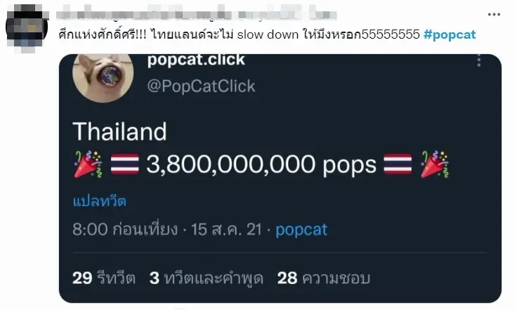 POPCAT ศึกคลิกสนั่นโลก เกมธรรมดาที่ชาวเน็ตไทยให้ความสนใจ จนขึ้นแท่นอันดับ 4 เพียงชั่วข้ามคืนหลังต่างประเทศเล่นมาแล้วกว่า 4 เดือน