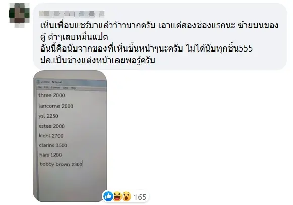 เหมือนกับกรณีของหนุมรายหนึ่ง ที่ได้รวบรวมบรรดาเครื่องสำอางของแฟนสาว มาโพสต์ขอความคิดเห็นจากชาวเน็ตว่า “ขออนุญาตเพื่อนผู้หญิงครับผมโพสถามมูลค่าลงกลุ่มไหนได้บ้าง มันบอกหมดนี้ไม่เกิน 30k รบกวนทีครับ”