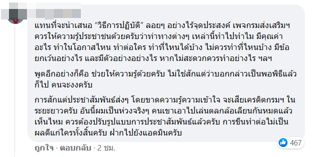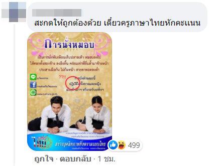 พร้อมกับโพสต์ภาพชายหญิงกำลังทำท่าหมอบลงพื้น และมีคำบรรยายในภาพว่า ” การนั่งหมอบ เป็นการนั่งพับเพียบเก็บปลายเท้า หมอบลงไป ให้ศอกทั้งสองข้าง ลงถึงพื้น คร่อมเข่าที่ยื่นล้ำมาข้างหน้า ประสานมือกัน ไม่ก้มหน้า สายตาทอดลงต่ำ