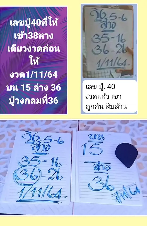 ตามด่วน! หวยปู่40 ปล่อยเลขเด็ดแล้ว 1/11/64 เน้น 2 ตัวเท่านั้น 15 – 36 งวดที่แล้วเข้าเต็ม ๆ 38 คอหวยห้ามพลาดตามได้ตาม!