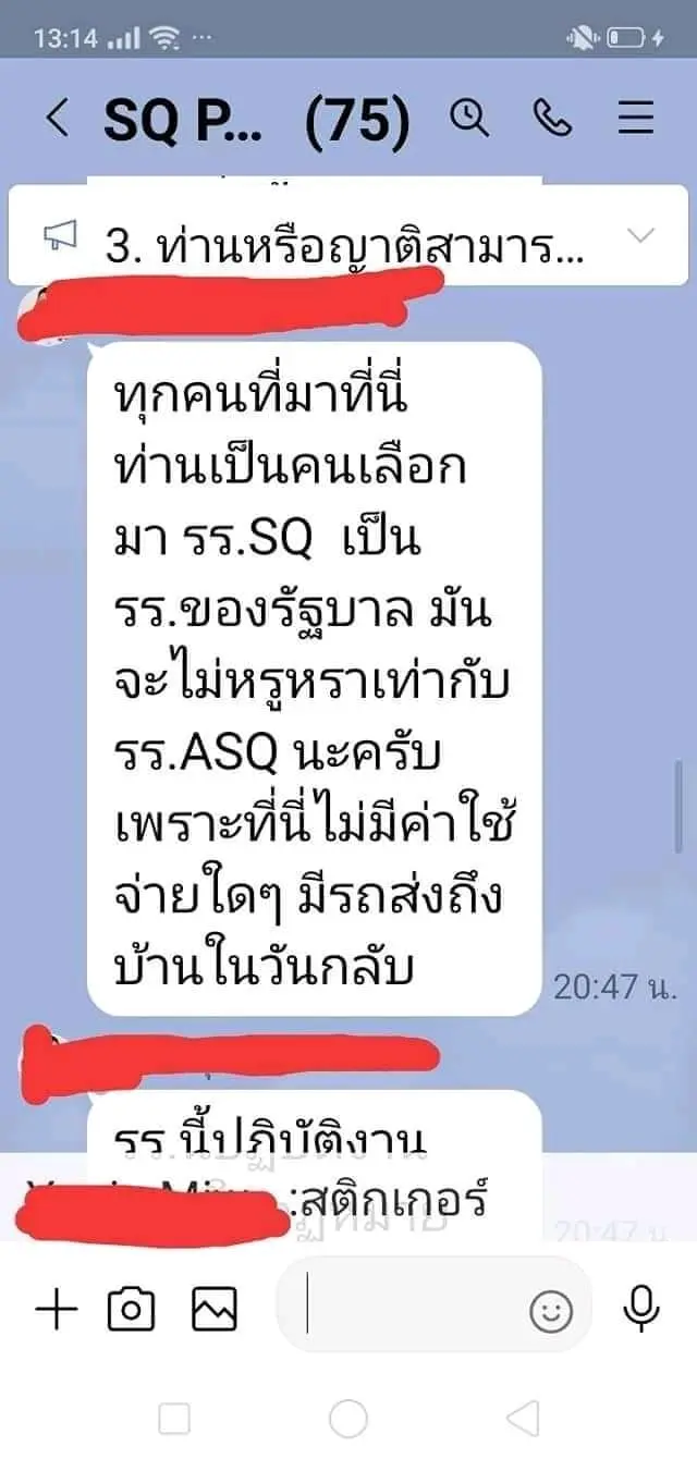 ทุกคนที่มาที่นี่ท่านเป็นคนเลือกมารร. SQ เป็นรร. ของรัฐบาลมันจะไม่หรูหราเท่ากับรร. ASQ นะครับเพราะที่นี่ไม่มีค่าใช้จ่ายใด ๆ มีรถส่งถึงบ้านในวันกลับ อยากอยู่หรูแล้วเลือกมาอยู่ SQ ไม่นะครับมาอยู่ที่นี่ต้องอยากอยู่แบบพอเพียงแบบประหยัดเงินรัฐบาล