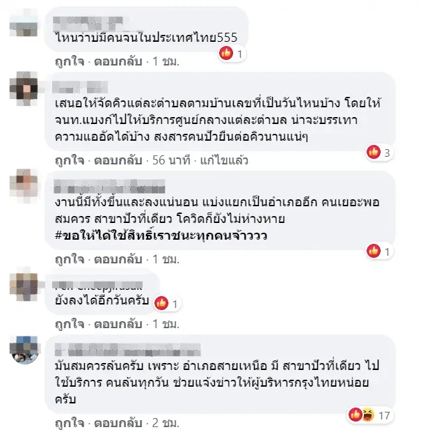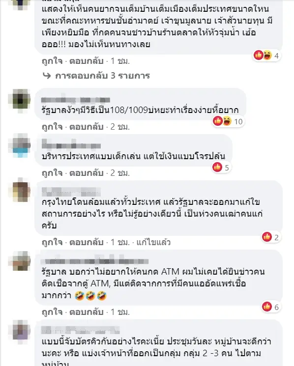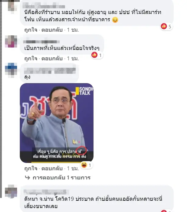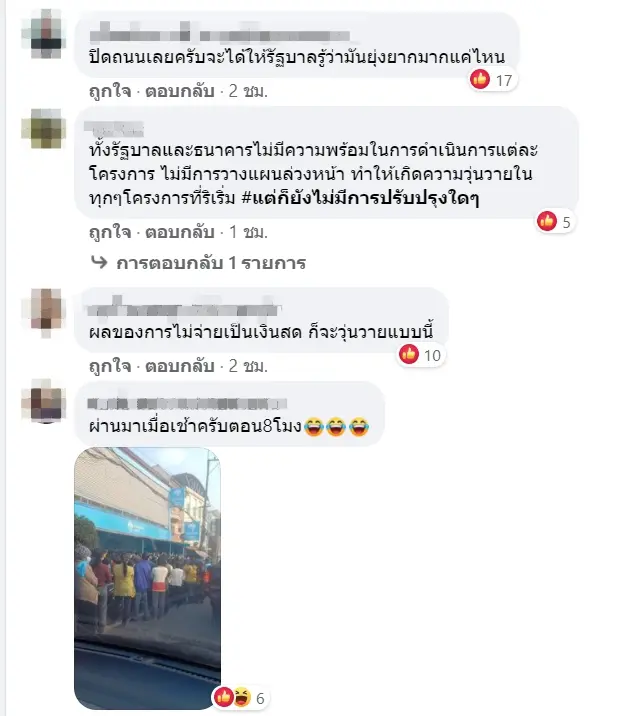 ขณะที่ชาวเน็ตเข้ามาแสดงความคิดเห็นจำนวนมาก ส่วนใหญ่ตำหนิรัฐบาลที่ไม่ยอมแจกเงินสดทำให้ชาวบ้าน ผู้สูงอายุต้องออกมารวมตัวกันที่ธนาคาร