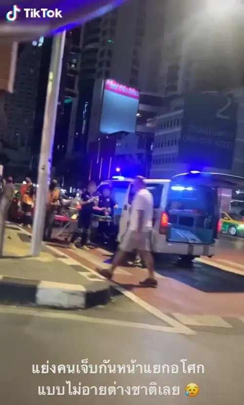 อย่างกรณีนี้ ผู้ใช้ TikTok รายหนึ่งได้โพสต์คลิปภาพบรรยากาศบริเวณสี่แยกอโศก ซึ่งจากภาพจะเห็นได้ว่าในขณะนั้นได้มีอุบัติเหตุอยู่ริมถนนและได้มีรถตู้ของหน่วยอาสากู้ภัยจอดช่วยเหลือผู้บาดเจ็บ แต่จู่ๆดันมีกลุ่มชายอีกกลุ่มเข้ามารุมทำร้ายอาสาสมัครที่ช่วยเหลือผู้บาดเจ็บอยู่