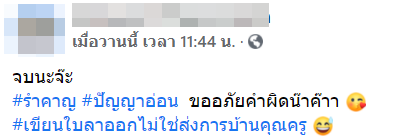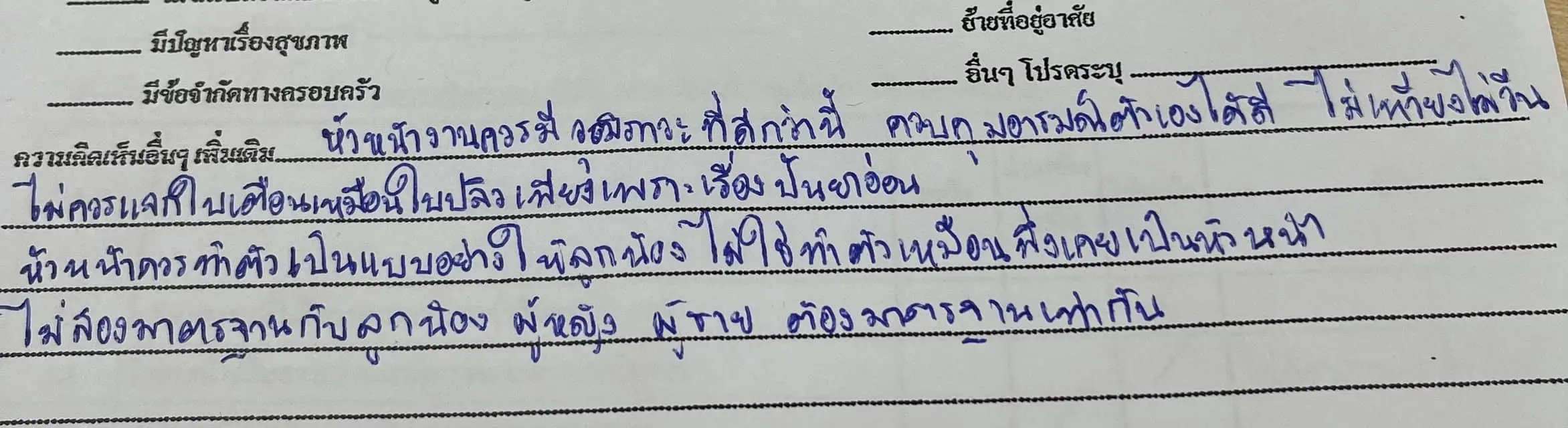 พร้อมกับให้เหตุผลอื่น ๆ ว่า หัวหน้างานควรมีวุฒิภาวะที่ดีกว่านี้ ควบคุมอารมณ์ตัวเองได้ดี ไม่เหวี่ยงไม่วีน ไม่ควรแจกใบเตือนเหมือนใบปลิว เพียงเพราะเรื่องปันยาอ่*อน หัวหน้าควรทำตัวเป็นแบบอย่างให้ลูกน้อง ไม่ใช่ทำตัวเหมือนพึ่งเคยเป็นหัวดน้า ไม่สองมาตรฐานกับลูกน้อง ผู้หญิงผู้ชาย ต้องมาตรฐานเท่ากัน