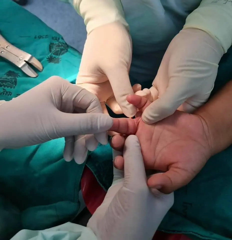 เนื่องจากเด็กเพิ่งกินอาหาร การดมยาสลบ แพทย์ต้องใช้เทคนิคพิเศษไม่ให้สำลักอาหารระหว่างดมยาสลบ พอเริ่มหลับ ทำความสะอาด ปูผ้า หมอกระดูกใช้คีมตัดกระดูกตัดแหวนออกมา ได้ไม่ยาก