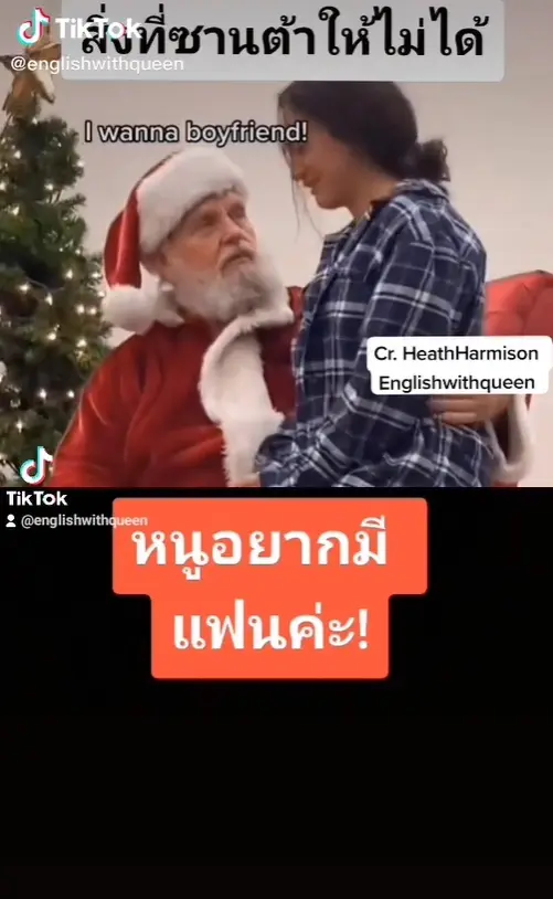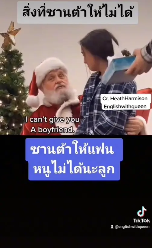 โดยผู้ใช้ TikTok รายหนึ่งโพสต์เรื่องราวของหญิงสาวรายหนึ่งในงาน คริสต์มาส โดยมีคนแต่งตัวเป็นซานตาคลอสแล้วให้ผู้คนเข้าไปถ่ายรู้แล้วบอกสิ่งที่ตนอยากได้ แต่ของขวัญที่หญิงสาวรายนี้ต้องการคือ แฟนหนึ่งคน แต่ซานตาคลอสต้องจำใจตอบกลับไปว่า ฉันให้เธอไม่ได้หรอก โดยบทสนทนามีดังนี้