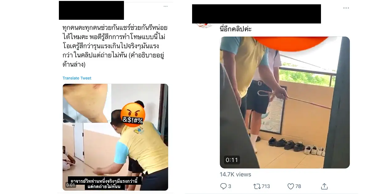 เรื่องราวจากผู้ใช้ทวิตเตอร์บอกว่าเหตุผลการลงโทษที่เกิดขึ้นเนื่องจากนักเรียนเตะบอลไปโดนตู้ไม้ รวมทั้งค้างส่งงานอาจารย์ท่านนี้อยู่จึงทำโทษ โดยการใช้ไม้เรียวตีและเพิ่มจำนวนการทำโทษจากการไม่ส่งงานไปพร้อมพร้อมกันด้วย