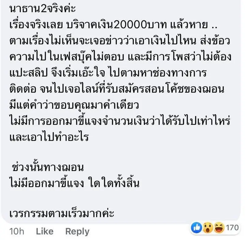 พร้อมทั้งยังมีภาพจากผู้ที่เคยยรจาคได้ออกมาพูดถึงการที่ฌอนนั้นไม่มีการชี้แจงเรื่องเินบริจาคพร้อมทั้งยังไม่ให้ทีการโพสต์สลีปการโอนเงินช่วยเหลือ และไม่มีการบอกว่านำเงินส่วนนั้นไปทำอะไรอีกด้วย