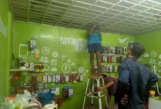 เพจเฟซบุ๊ก อีซ้อขยี้ข่าว2 ได้โพสต์ภาพเหตุการณ์พร้อมระบุข้อความว่า “ขึ้นไปปีนฝ้าจะเข้าไปขโมยของในร้านขายโทรศัพท์แต่เกิดหัวติดเอาออกไม่ได้ พอเช้ามาเจ้าของเปิดร้านเห็นเกาะค้าง ร้องขอความช่วยเหลือจนเจ้าหน้าที่ต้องมาช่วยแงะเอาตัวลงมาซึ่งมีพี่ๆ ตำรวจคอยยืนส่งกำลังใจให้อยู่ข้างๆ”