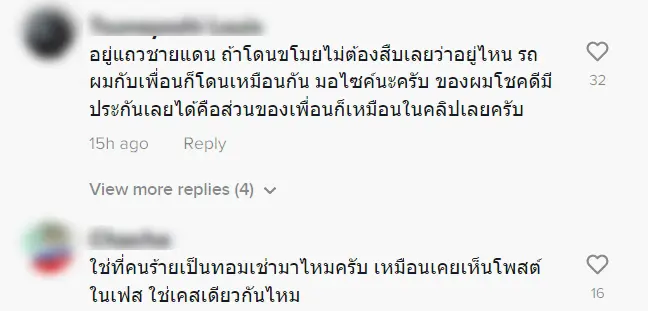 ทั้งนี้ ทำเอาชาวเน็ตแห่เข้ามาคอมเม้นท์ถึงเหตุการณ์ที่เกิดขึ้น ว่าขบวนการขายรถข้ามแดนเป็นขบวนการใหญ่ ซึ่งมีหลายรายที่ถูกขโมยไปเหมือนกัน แม้แต่รถมอเตอร์ไซค์ก็ยังไม่เว้น
