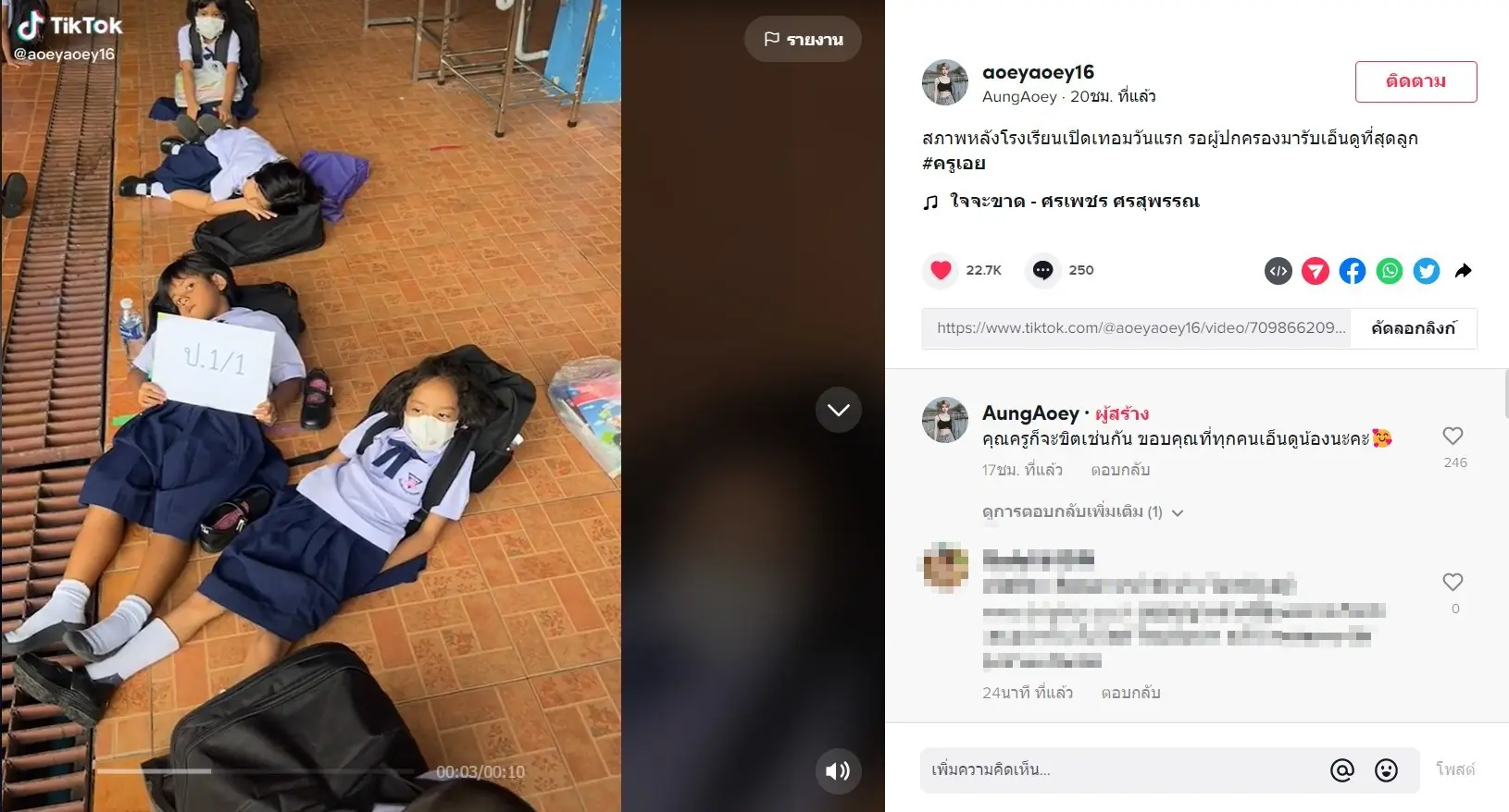 ล่าสุดได้มีผู้ใช้ Tiktok ชื่อ aoeyaoey16 ได้เผยแพร่คลิปวิดีโอน่ารักๆ ของบรรดาลูกศิษย์ตัวน้อย ลงในช่องของตัวเอง ซึ่งเผยให้เห็นสภาพหลังเลิกเรียนของเด็กๆ ที่นอนรอผู้ปกครองมารับแบบหมดเรี่ยวแรงกันถ้วนหน้า