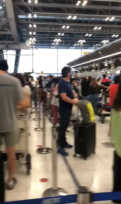 จากเหตุการณ์เมื่อวันที่ (04 มิ.ย. 65) มีผู้ใช้เฟซบุ็กรายหนึ่งโพสต์คลิปพร้อมข้อความว่า Thai Airways วันนี้คิวการบินไทยที่สุวรรณภูมิสาหัสมากและมีเคาเตอร์ที่จำกัดมากเมื่อเทียบกับผู้โดย Staff น้อยมาก แม้จะมาก่อนล่วงหน้า 3 ชั่วโมงก็ไม่น่าทัน เดินไปถาม staff เพียงคนเดียวที่คอยคุมแถว พี่คะ พี่เห็นหางแถวมั้ยคะว่ามันไปถึงโน่นแล้ว เค้าบอกว่า “น้อง พี่ฝากให้ช่วยถ่ายคลิปหน่อย ผู้บริหารให้คนมาแค่นี้ ประเทศเปิดแล้ว มีคนรอเช็คอินหลักพันแต่มี staff แค่นี้ (18 เคาน์เตอร์) เค้าเอาคนออกหมด ไม่มีคนทำงาน ผู้บริหารไม่เคยมาดูแลเลยอยู่บนหอคอยงาช้าง คนในออฟฟิศก็ได้แต่พราวไปวันๆ แต่ไม่เคยลงมาดูน้องเลย”
