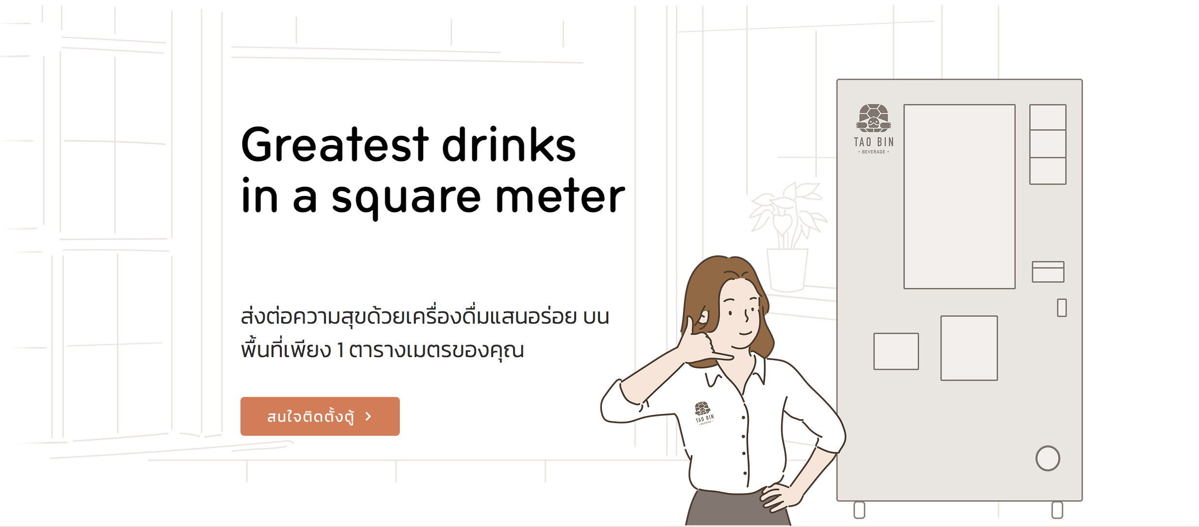 - หากคุณต้องการอำนวยความสะดวกให้กับลูกค้า พนักงานหรือสร้างภาพลักษณ์ที่ทันสมัยให้กับพื้นที่ เช่น บริษัท โรงงาน โรงพยาบาล โรงแรม คอนโด มหาวิทยาลัย ฯ ทางเราพร้อมติดตั้งและดูแลตู้ให้ฟรีโดยไม่มีค่าใช้จ่าย (ยอดขายขั้นต่ำ 65 แก้ว/วัน หากต่ำกว่า ขอพิจารณาเรื่องยกกลับนะคะ)