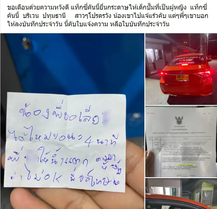 แท็กซี่ หื่น เขียนโน้ตให้เด็กปั๊ม ขอเลีย 4 นาที ถ้าไม่โอเคพี่ขอโทษ ก่อนขับรถมายิ้มโชว์ 1 ที