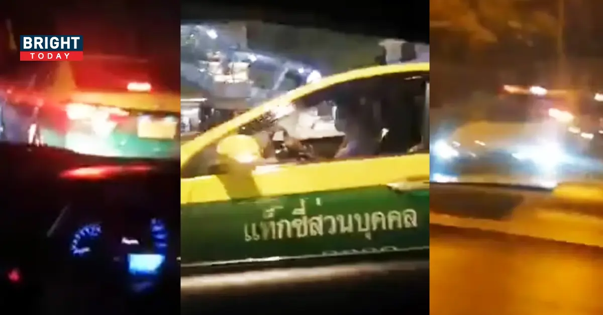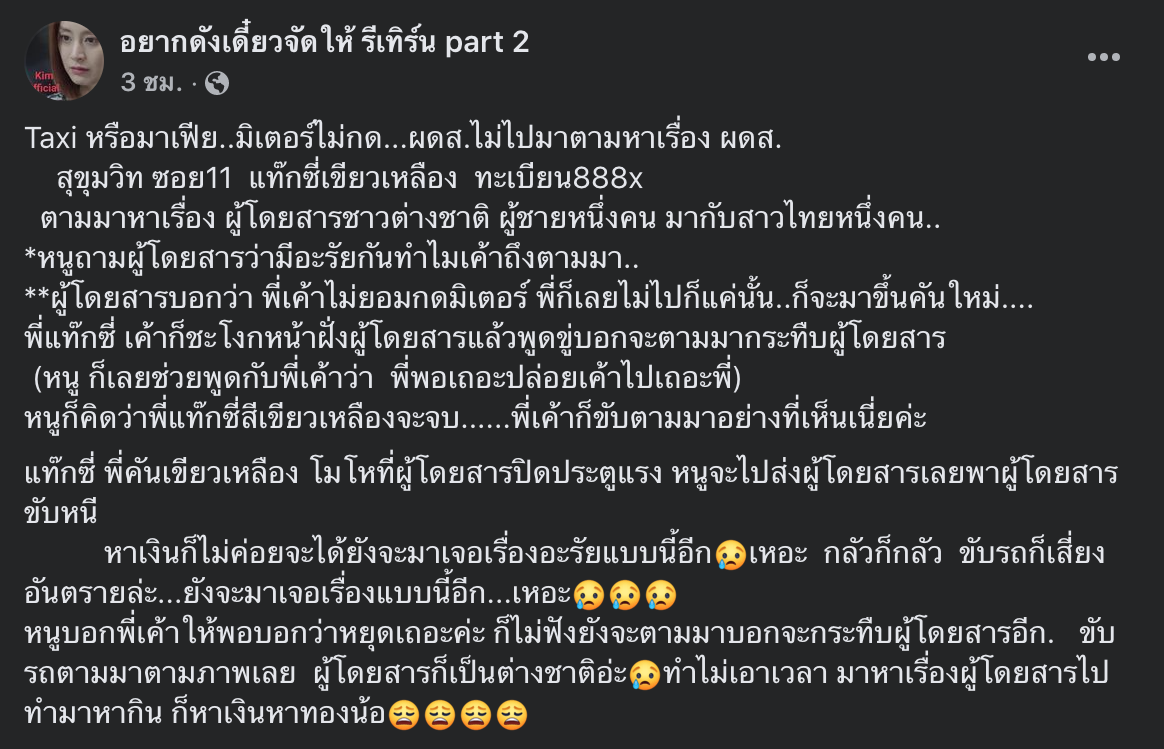 พี่แท๊กซี่ เค้าก็ชะโงกหน้าฝั่งผู้โดยสารแล้วพูดขู่บอกจะตามมากระทืบผู้โดยสาร