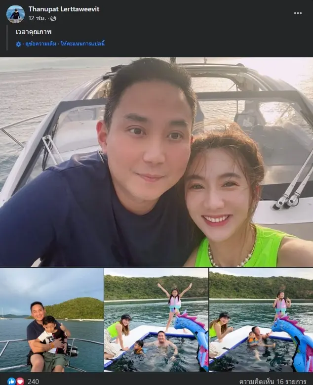 อัพเดทชีวิตล่าสุด ปอ ตนุภัทร โพสต์ภาพช่วงเวลาแห่งความสุข หลังพาครอบครัว ล่องเรือ เที่ยวกลางทะเล พร้อมแคปชั่นสุดหวาน